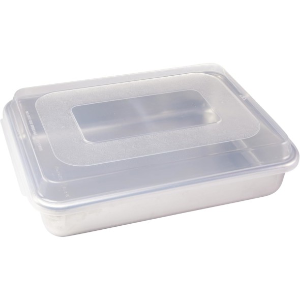 Bandeja de Aluminio con Tapa Plástica Nordic Ware 34,6 x 25,4 cm – Reutilizable y Resistente