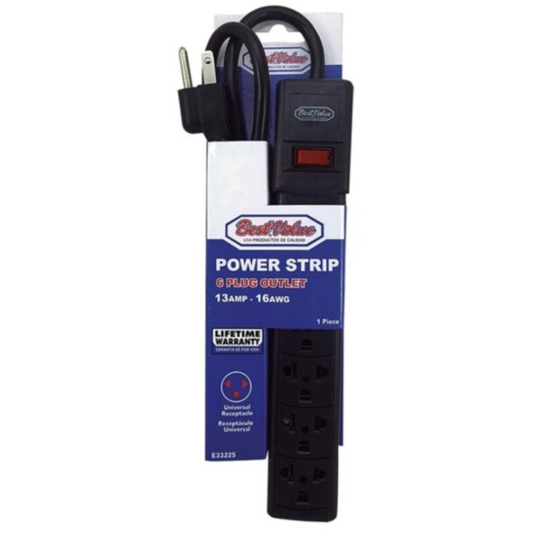 Cable Extensión Eléctrica Negra de 6 Enchufes Best-Value E33225