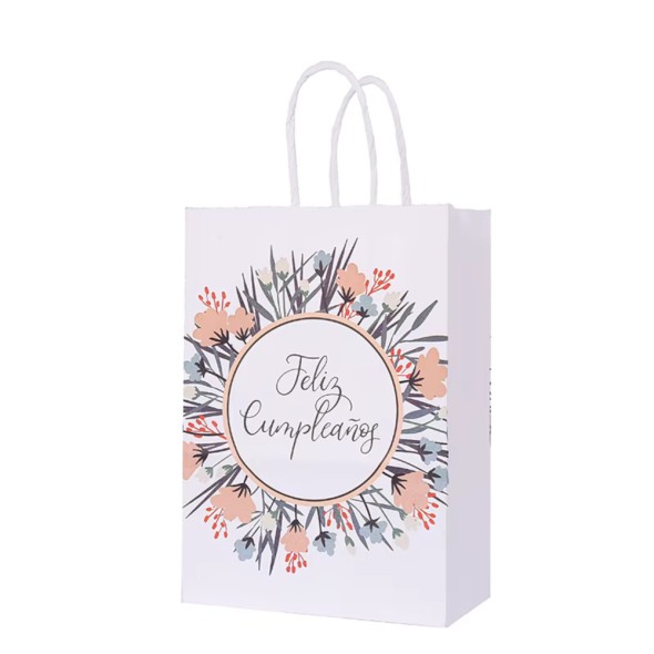 Bolsa de Papel para Regalo con Diseño “Feliz Cumpleaños” y Asas Trenzadas 27×21 cm