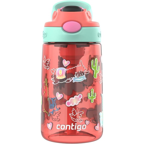Contigo Kids Botella Aubrey 414 ml Coral con Diseño Cactus y Corazones