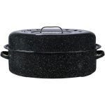 Tostador ovalado Granite Ware 0510 con tapa, capacidad de 9 kg. Fabricado en acero esmaltado negro resistente y con antiadherente natural (libre de químicos), ideal para hornear pavos, carnes o asados de gran tamaño. Internacionalmente conocido como Granite Ware Oval Roaster with Lid – 0510, 9 kg Capacity, Black Enamel.