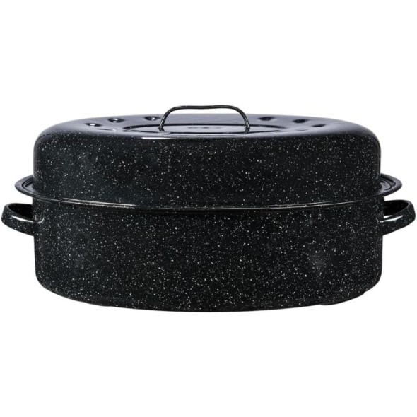 Bandeja Ovalada de 9 kg Granite Ware 0510 con Tapa – Esmaltado Negro