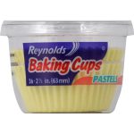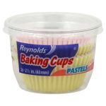 Dale un toque de color y estilo a tus cupcakes y muffins con los moldes de papel Reynolds Baking Cups Pastels. Estos capacillos decorativos de alta calidad vienen en suaves tonos pastel, ideales para cumpleaños, eventos, repostería diaria o presentaciones especiales. Resistentes al aceite y al horneado, mantienen su forma y color, realzando la presentación de tus postres. Tamaño estándar para moldes convencionales. Internacionalmente conocido como Reynolds Baking Cups Pastels – 63 mm x 36 mm.