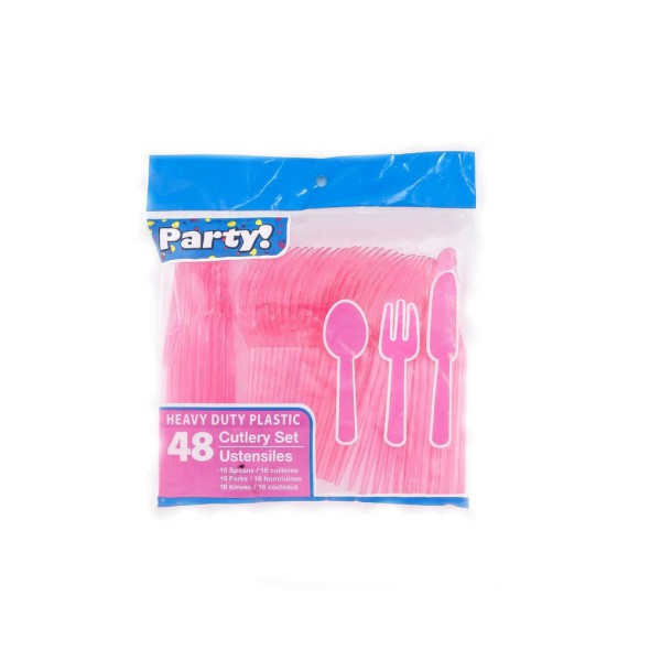 Juego de Cubiertos de Plástico Rosa Transparente Reutilizable 48 Piezas para Fiestas Greenbrier