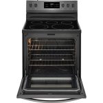 El diseño elegante en color negro combina con cualquier estilo moderno y facilita la limpieza. Además, gracias a su amplia ventana en el horno, podrás revisar el estado de tus alimentos sin necesidad de abrir la puerta. Internacionalmente conocida como Frigidaire Electric Range FCRE3052AB – Black.