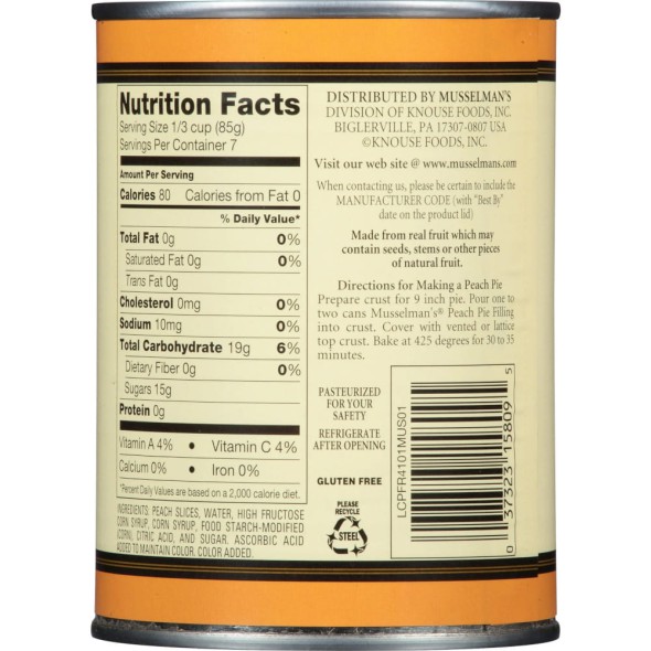 Disfrutá del delicioso sabor del durazno con el Relleno para Tarta de Durazno MUSSELMAN’S 595 g, ideal para preparar postres irresistibles. Este relleno listo para usar contiene trozos jugosos de durazno en un jarabe espeso y dulce, perfecto para tartas, pasteles, empanadas, cheesecakes y más. De textura suave y sabor natural, es una solución práctica y sabrosa para tus recetas dulces favoritas. Producto importado de alta calidad. Internacionalmente conocido como MUSSELMAN’S Peach Pie Filling 595 g.