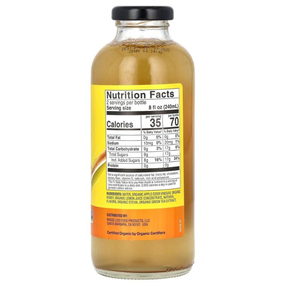 Ideal para quienes buscan una bebida saludable que apoye la salud intestinal, el metabolismo y el sistema inmunológico, sin azúcares añadidos ni ingredientes artificiales. Internacionalmente conocido como Bragg Prebiotic Honey & Green Tea 473 ml – Organic Apple Cider Vinegar Drink.