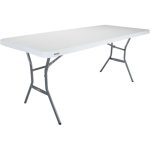 La mesa plegable Lifetime de 1,83 metros está diseñada para ser resistente, duradera y fácil de transportar. Su superficie está hecha de polietileno de alta densidad (HDPE) resistente a impactos, manchas y a los rayos UV, con estructura de acero con recubrimiento anticorrosivo. Ideal para eventos, reuniones, camping, trabajo, ferias o uso doméstico, tanto en interiores como al aire libre.