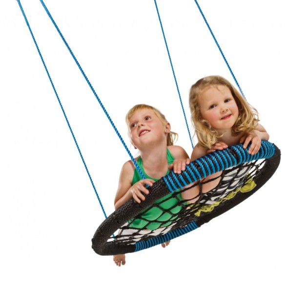La hamaca nido ovalada de KBT es una excelente adición para cualquier área de juegos al aire libre. Con un diseño único y materiales de alta calidad, proporciona una experiencia de balanceo cómoda y segura para niños a partir de 3 años. El asiento está fabricado con cuerdas de polipropileno (PP) tejidas, y el marco de acero está envuelto con cuerda de PP para crear zonas de impacto suaves. Además, cuenta con acolchado suave en ambos extremos longitudinales para mayor seguridad. Las cuerdas de suspensión son ajustables y están equipadas con anillos y ochos de acero galvanizado. Este producto cumple con las normativas europeas EN 71-1-2-3-8 y cuenta con la certificación TÜV Nord. También conocida como KBT Oval Nest Swing Black/Blue – Model 188.001.004.001.