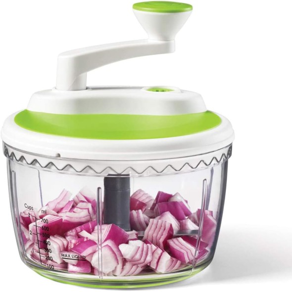 El Procesador de Alimentos Manual Starfrit Dual Speed Pro es ideal para preparar comidas rápidas y saludables sin necesidad de electricidad. Su sistema de doble velocidad (picado y batido) permite obtener diferentes texturas para salsas, purés, hummus, vegetales y frutos secos.