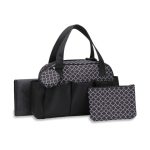Fabricado con materiales resistentes y de fácil limpieza, este bolso es ideal para viajes, paseos y el día a día. También conocido como Babyboom Diaper Bag with Changing Pad and Accessories – Black Patterned Diaper Tote.