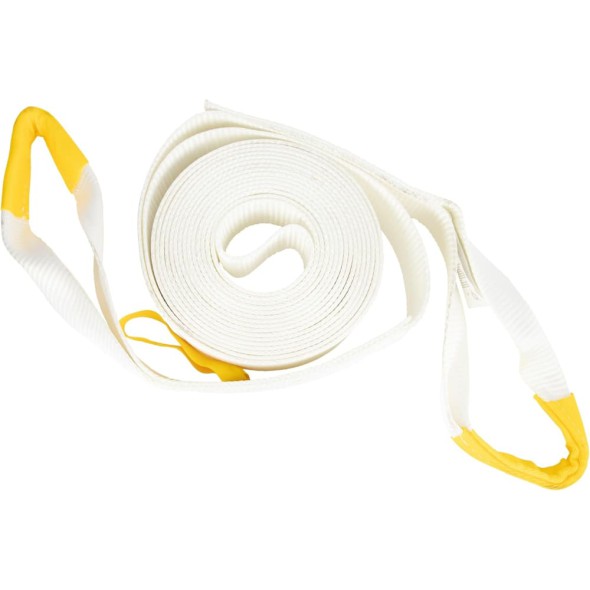 Su diseño plano de 4 pulgadas de ancho proporciona mayor superficie de contacto, lo que reduce el riesgo de dañar los puntos de anclaje. Además, cuenta con ojales reforzados en ambos extremos para facilitar su conexión a ganchos, grilletes o anillas.