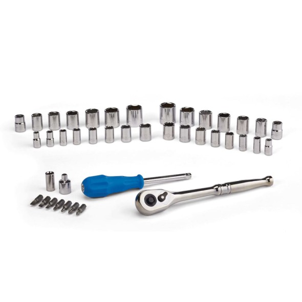 El juego de herramientas Mastercraft de 41 piezas es una solución práctica y confiable para tareas mecánicas, automotrices, domésticas y de mantenimiento general. Incluye una selección completa de dados (sockets), matraca (ratchet) y extensiones, fabricados en acero al cromo vanadio para máxima durabilidad y resistencia al desgaste.