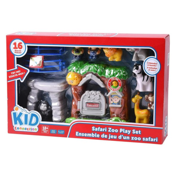 El Safari Zoo Play Set de 16 piezas de Kid Connection es un divertido set interactivo que transporta a los niños al mundo de los animales salvajes. Incluye figuras de animales, cuidadores, accesorios de zoológico y una entrada con sonidos y melodías que hacen que el juego sea aún más realista.