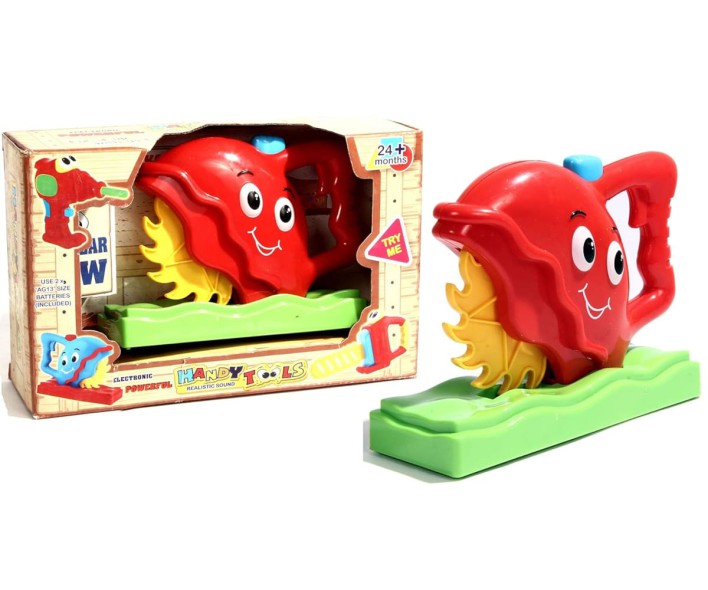 El diseño está pensado para manos infantiles, con un agarre ergonómico y materiales seguros, sin bordes filosos. El disco simula el movimiento sin representar ningún peligro, permitiendo que los niños jueguen con total tranquilidad. También conocido como Toy Circular Saw for Kids – Safe Pretend Play Tool with Sound – KOS GROUP.