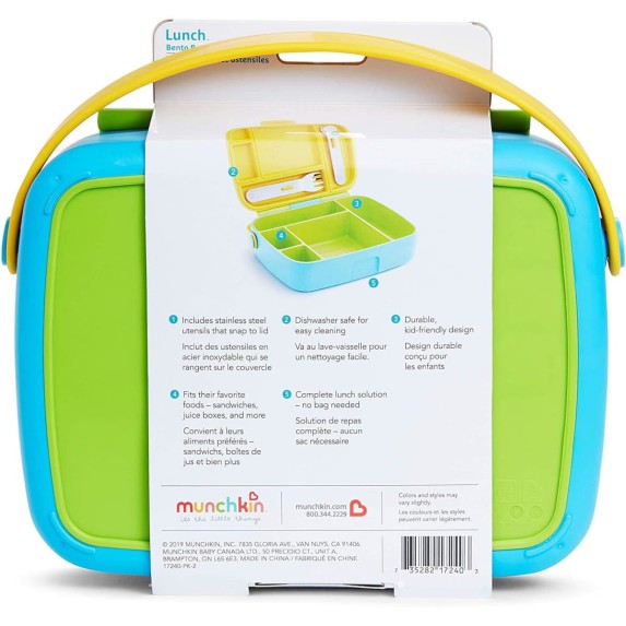 La Lonchera Escolar para Niños Munchkin 17250-PK-1 combina practicidad, resistencia y un diseño divertido para que los más pequeños lleven sus comidas favoritas a la escuela o en salidas. Su estructura rígida protege el contenido, mientras que el cierre seguro evita derrames. El asa amarilla facilita el transporte, y su interior está diseñado para mantener los alimentos organizados. Fabricada con materiales libres de BPA, es segura para el uso infantil y fácil de limpiar, fomentando hábitos saludables al permitir llevar comidas caseras en cualquier ocasión. También conocida como Munchkin Kids Lunch Box Green/Blue/Yellow 17250-PK-1.