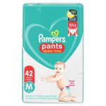 Haz más fácil el cambio de pañal con los Pañales Tipo Pants Pampers Talla Mediana (42 unidades). Con diseño tipo pantaloncito, estos pañales se colocan como ropa interior, facilitando el proceso de cambio para bebés activos o en etapa de aprendizaje para ir al baño.