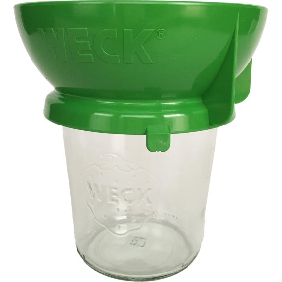 El embudo verde WECK de 100 mm modelo #9090316 está especialmente diseñado para facilitar el llenado limpio y seguro de frascos de boca ancha durante el proceso de conserva, fermentación o almacenamiento. Su estructura robusta y ancha permite el paso de ingredientes líquidos, semisólidos o sólidos como mermeladas, frutas en trozos, legumbres o salsas sin derramar.