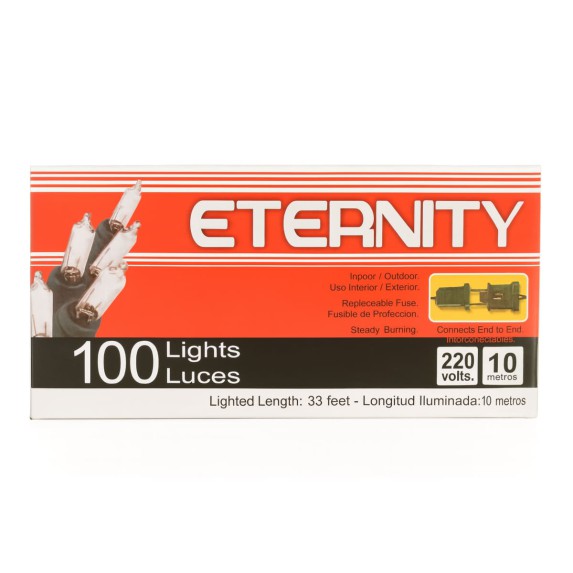 También conocida como ETERNITY 100-Bulb White String Light – 10m Green Wire, 220V for Indoor/Outdoor Decoration.