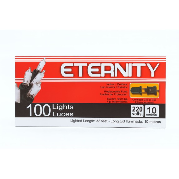 También conocida como ETERNITY 100-Bulb White String Lights – 10m White Wire, 220V for Events and Holiday Decoration.