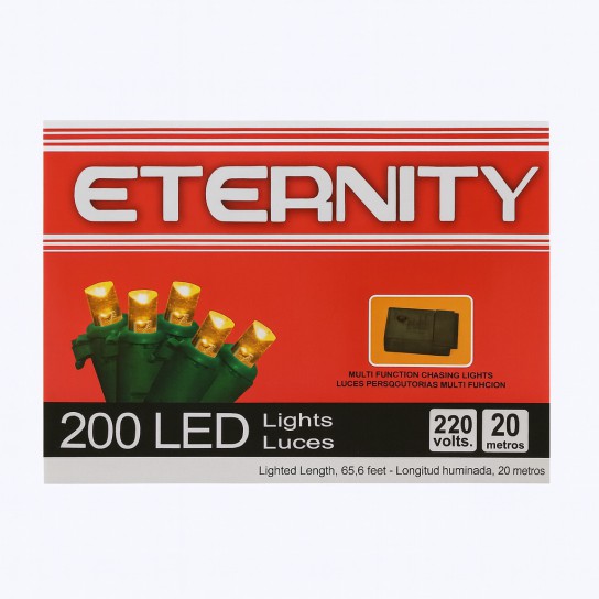 También conocida como ETERNITY 200 White LED String Lights with Functions – 20m Green Wire, 220V for Elegant Event and Holiday Lighting.
