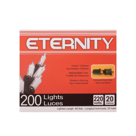 ETERNITY 200 White Bulb String Lights – 20m Green Wire, 220V for Christmas and Outdoor Decoration.
