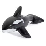 Su estructura amplia y resistente está fabricada en vinilo pretesteado, con dos asas reforzadas para que los niños se sujeten con confianza mientras flotan. Ideal para jugar en la pileta o la playa, el diseño realista de la orca con detalles blancos y negros lo convierte en un favorito del verano.