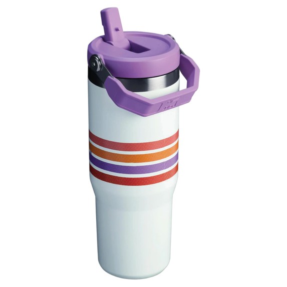 Un diseño encantador y un rendimiento excepcional, con la calidad Stanley. También conocido como Stanley Flip Straw Tumbler 887ml Cream Lilac Stripe with Built-In Straw.