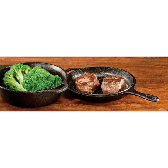 Este combo es ideal para quienes buscan una batería de cocina compacta pero multifuncional, apta tanto para uso diario como para camping o exteriores. También conocido como Lodge 2-in-1 Cast Iron Combo Cooker 26 cm – LCC3INT.