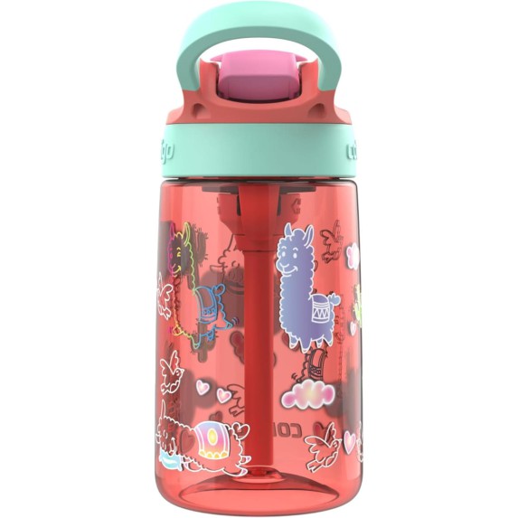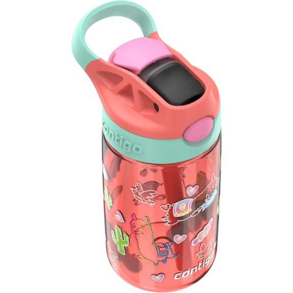 Su sistema de apertura con botón permite beber con una sola mano, mientras que la boquilla a prueba de derrames evita accidentes. La tapa protectora mantiene la boquilla limpia, y el diseño colorido con ilustraciones divertidas la convierte en una botella única y atractiva para los más pequeños. También conocida como Contigo Kids Aubrey Bottle 414 ml Coral Cactus & Hearts Design.