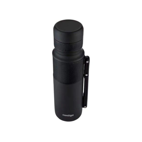 Su resistente manija facilita el transporte, mientras que la tapa hermética evita fugas y derrames. Ideal para viajes largos, excursiones, campamentos, días de pesca o uso diario en la oficina. Su diseño robusto y elegante combina practicidad con durabilidad, adaptándose a cualquier estilo de vida activo. También conocido como Contigo Thermal Bottle with Handle 1.1 L Black Powder Coat.