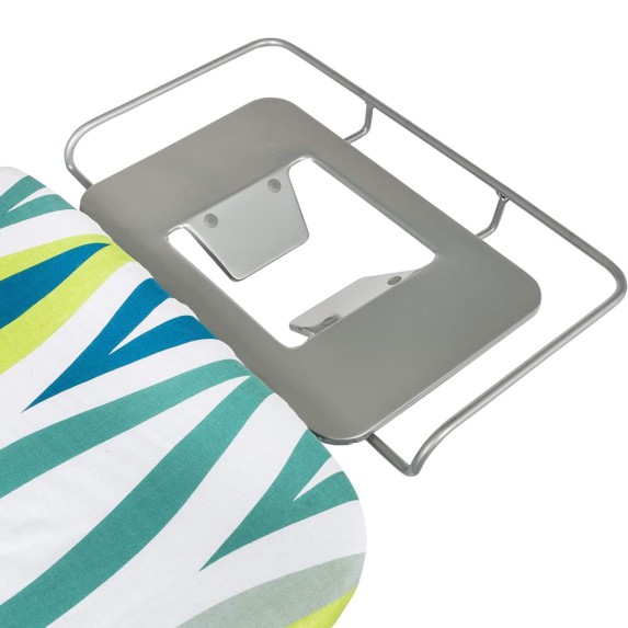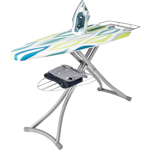 La Tabla de Planchar Plegable Honey-Can-Do BRD-08953 ofrece un planchado cómodo, seguro y eficiente gracias a su amplia superficie y diseño estable. Incluye soporte metálico resistente al calor para colocar la plancha y un estante inferior para ropa doblada o accesorios de planchado. Su funda acolchada con diseño moderno en tonos verde, azul y blanco proporciona un deslizamiento suave de la plancha, evitando marcas en la ropa. La estructura de metal robusto garantiza durabilidad, mientras que su sistema plegable facilita el almacenamiento en espacios reducidos. También conocida como Honey-Can-Do Folding Ironing Board with Iron Rest and Shelf BRD-08953.