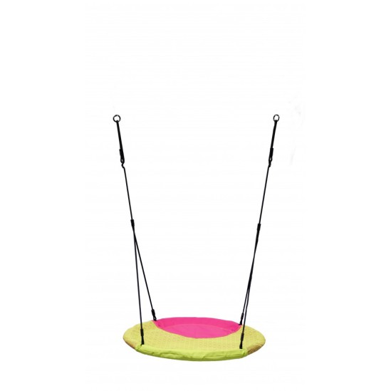 La Hamaca Nido KBT Winkoh Magenta/Verde Lima combina diseño moderno y diversión asegurada para niños. Su asiento circular acolchado y de gran tamaño ofrece máxima comodidad, permitiendo que los pequeños se sienten o recuesten mientras se balancean. Fabricada por KBT, especialista en accesorios de juego de alta calidad, cuenta con cuerdas resistentes y ajustables, además de una estructura robusta que garantiza seguridad y durabilidad para uso en exteriores. Ideal para colgar en el jardín, patio o áreas de juegos, fomentando la actividad física y el entretenimiento creativo. También conocida como KBT Winkoh Nest Swing Magenta/Lime Green 192.002.011.001.