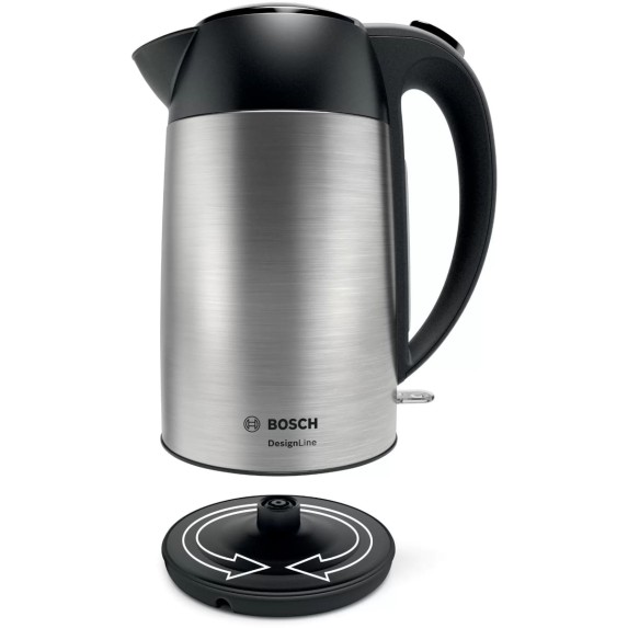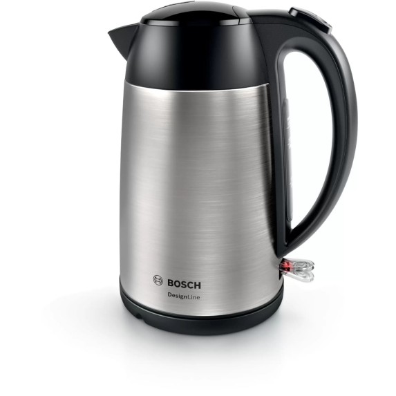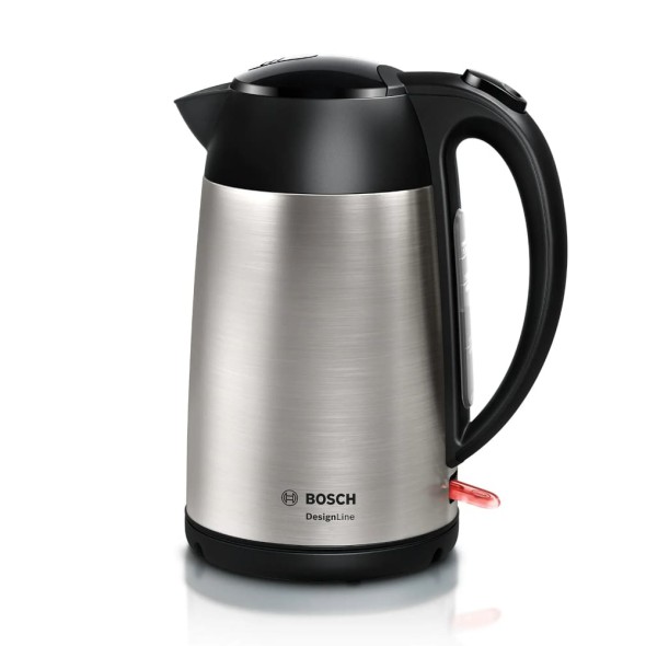 El Hervidor de Agua sin Cable Bosch DesignLine TWK3P420 combina potencia, capacidad y diseño elegante en acero inoxidable para ofrecerte agua caliente en pocos minutos. Con 2400W de potencia y una capacidad de 1,7 litros, es perfecto para preparar té, café, infusiones o comidas instantáneas. Su base de 360° permite colocar la jarra en cualquier posición, mientras que la resistencia oculta facilita la limpieza y mejora la durabilidad. Incluye sistema de seguridad con apagado automático, protección contra sobrecalentamiento y función de bloqueo de la tapa. Un electrodoméstico práctico, duradero y con el estilo moderno característico de la línea DesignLine de Bosch. También conocido como Bosch DesignLine Cordless Kettle TWK3P420 2400W 1.7L Stainless Steel.