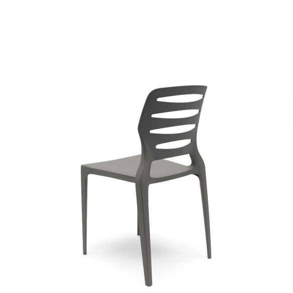 Su respaldo ergonómico con aberturas horizontales ofrece confort, ventilación y un estilo contemporáneo que se adapta a diferentes ambientes: comedores, oficinas, restaurantes, bares, terrazas o jardines. Además, es apilable, lo que facilita su almacenamiento y transporte. Cuenta con un asiento de 42 cm de ancho.