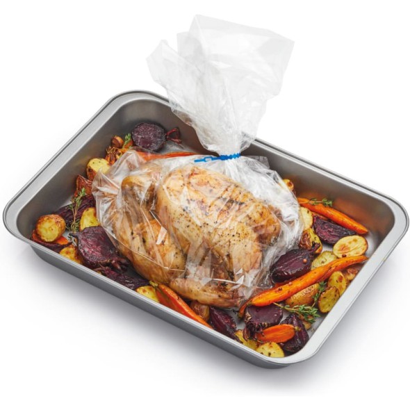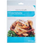 Gracias a su tamaño extra grande, son ideales para asar piezas completas como pollo, pavo o cortes grandes de carne, evitando que el horno se ensucie y reduciendo el tiempo de limpieza. Resistentes al calor, seguras para uso alimentario y fáciles de usar: solo coloca los ingredientes dentro de la bolsa, ciérrala y llévala al horno. También conocido como KitchenCraft Pack of 2 Extra Large Roasting Bags.
