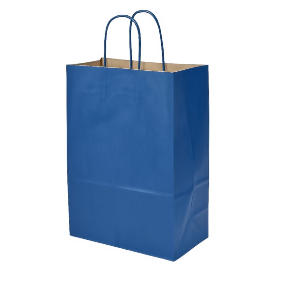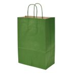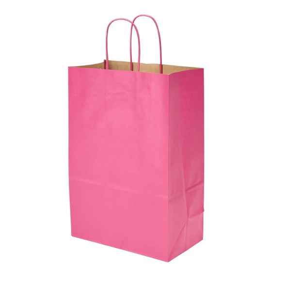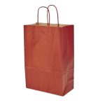 Perfecta para presentar ropa, libros, accesorios, cosméticos, cajas pequeñas y más. Además, al ser de papel, es biodegradable y reciclable, convirtiéndola en una alternativa ecológica frente a bolsas plásticas. También conocida como Kraft Paper Gift Bag with Twisted Handles – Assorted Colors 33×26 cm.