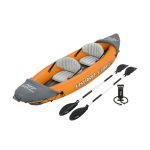 El set incluye dos remos de aluminio, así como una bomba manual para inflado rápido, haciendo que el kayak esté listo para usar en pocos minutos. Además, cuenta con un diseño aerodinámico que mejora la navegación y la maniobrabilidad. También conocido como Bestway Hydro-Force Rapid X2 Inflatable Kayak Boat 2-Person 180 kg.