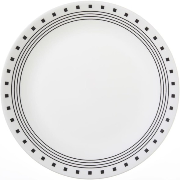 El Corelle Set de Vajilla 16 Piezas City Block combina estilo urbano, diseño geométrico y la resistencia incomparable que caracteriza a Corelle. Su patrón City Block, en elegante blanco con líneas negras minimalistas, aporta un toque contemporáneo que se adapta perfectamente a mesas modernas y cocinas de estilo industrial.