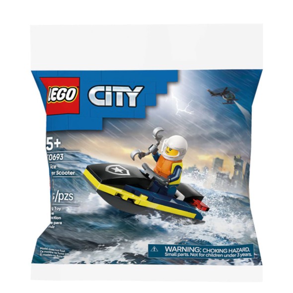 El LEGO City Moto de Agua de Policía (30693) es un divertido set compacto de 29 piezas, ideal para niños que disfrutan de los juegos de acción, rescates y aventuras policiales. Incluye una minifigura de policía y una moto de agua para patrullar ríos, lagos y costas dentro del universo LEGO City.