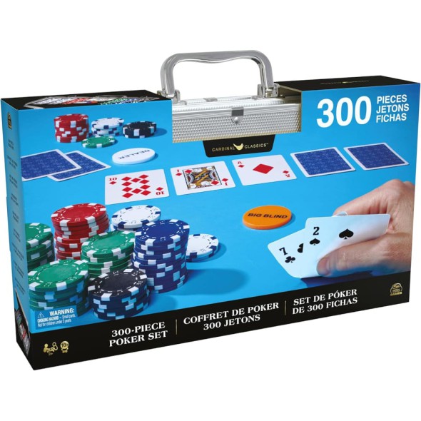 Ideal para noches de juego, reuniones familiares o partidas con amigos, este set ofrece fichas de peso equilibrado y excelente sensación al tacto, perfectas para shuffle, stacking y movimientos típicos de casino. Su presentación premium lo hace también un regalo ideal para cualquier aficionado al póker. También conocido como 300-Piece Poker Set with Carrying Case – Cardinal Classics (Spin Master).