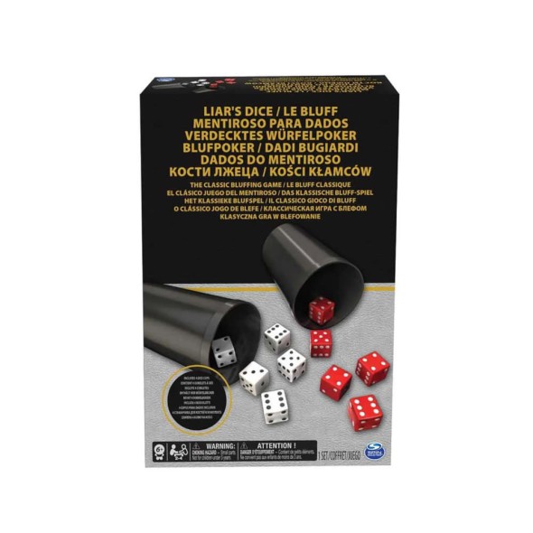 Este set incluye materiales resistentes y un formato portátil que facilita llevarlo a viajes, fiestas o noches de juego. Es fácil de aprender, dinámico y muy rejugable, lo que lo convierte en un imprescindible para cualquier colección de juegos de mesa. También conocido como Liar’s Dice Board Game – Spin Master (6035369).
