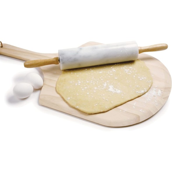 El peso del mármol ayuda a extender la masa con menos esfuerzo, ofreciendo un acabado uniforme y suave. Incluye asas de madera ergonómicas para un agarre cómodo y una base de madera para almacenarlo sin dañar la superficie. También conocido como Norpro Marble Rolling Pin.