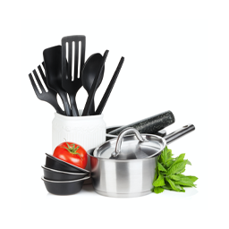 Platos, vasos, copas, cubiertos, ollas y utensilios |